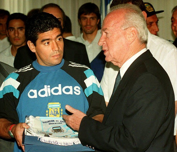 מראדונה הופיע שלוש פעמים באצטדיון רמת גן, במדי נבחרת ארגנטינה, מול נבחרת ישראל בעת שארגנטינה ערכה משחקי הכנה לטורנירי המונדיאל. קודם כל, הם שיחקו בתקופות נפרדות, אז אפשר להפליג בדמיון, לדבר ללא הרף על נקודות השקה ולעולם לא להתקרב לתשובה של מי היה גדול יותר (למרבה הצער. אפשר גם לפסול את ההישגים של מראדונה בגלל הסמים. אולי צביעות מסוימת לאחר מה שאנו רואים עכשיו, אך מראדונה ופלה בהחלט נפגשו בעבר. קבוצה אחת עם מראדונה ופלה.
